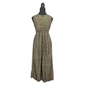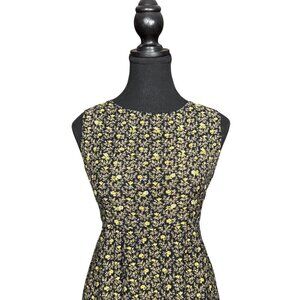 This vintage April Cornell maxi dress is a dreamy 90s piece blending whimsigoth charm with romantic prairie style. Crafted from soft rayon with a black base and golden yellow floral print, it features subtle embroidered flowers with a touch of sparkle for that perfect witchy-boho detail.