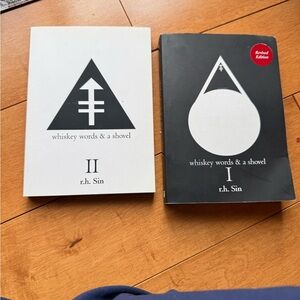 Set of two books: Whiskey Words & a Shovel I by r.h. Sin. Features black and white covers with unique designs.