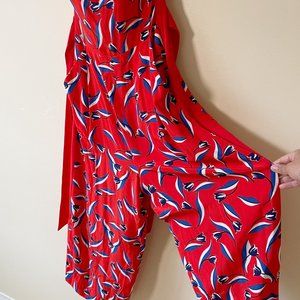 Whistles Lyza Pure Silk Tulip Print Jumpsuit, Red/Multi