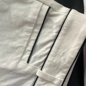Just above ankle length. Black piping detail. No stains or marks.