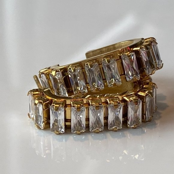 Feel Beautiful Everyday in these magnificent and dazzling cubic zirconia baguette stones set into exquisitely cut stainless steel. The flash of the stones is perfectly reflected by the stainless steel background. Heads will turn as you go by in a flash of brilliance.