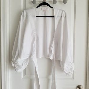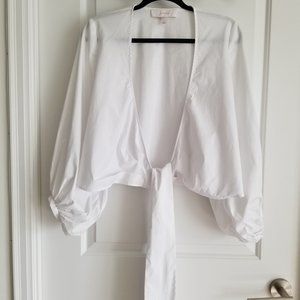 Tags: Balloon sleeve top, balloon sleeve blouse, white wrap top, white wrap tie top, white wrap tie shirt, puff sleeve blouse, puff sleeve shirt