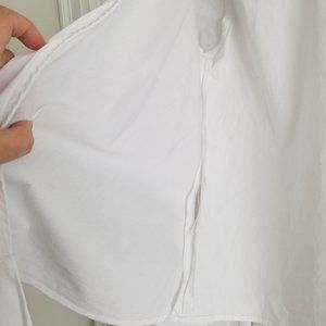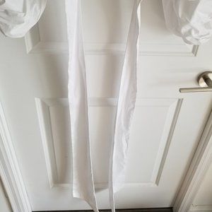 Elegant designer blouse in a crisp white that can be dressed up or down. The balloon sleeves are ruched beautifully to elevate the look without being too over the top. Long ribbon tie allows chest and waist to be adjustable.