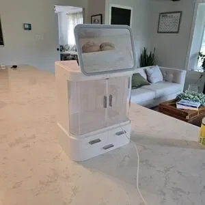Clear and white beauty storage with rechargeable led light for perfect makeup application