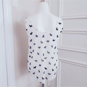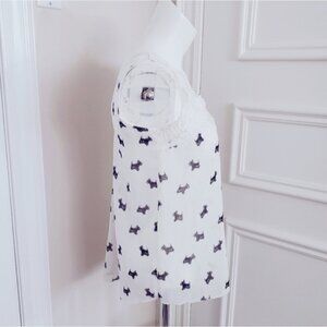 White + Black Emroidered Sheer Sleeveless Blouse Dog Print- XS