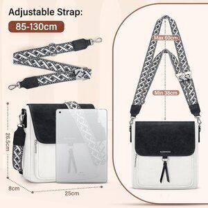 White Black Women PU Leather Crossbody Bag Wide Adjustable Strap Shoulder