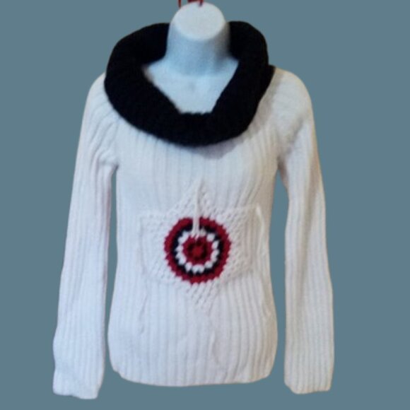 White, Black and Red Vintage Wool Blend Sweater Fits Size Small