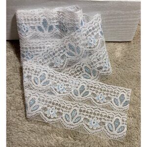White & Blue Floral Lace Trim Ribbon 1Yard Length 3" Width