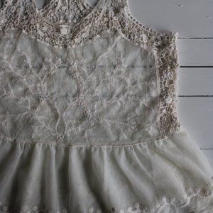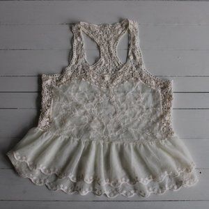 A beautiful bohemian inspired lace tank top. A sheer material. Racer back. Off-white colour.