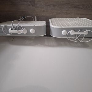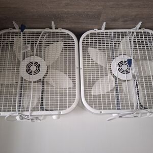 Set of two white box fans. Perfect for cooling any room.