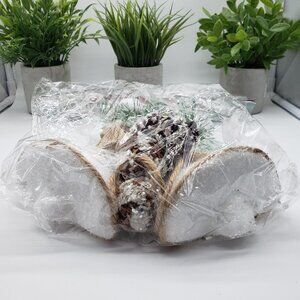 -Pretty and elegant double glittered bell ornament with burlap trim and bow as well as dangling pendant style frosted pine tree and pine cone accents