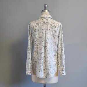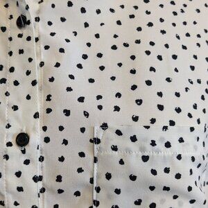 White Button Up Blouse with Irregular Black Polka Dot Pattern Geometric Small