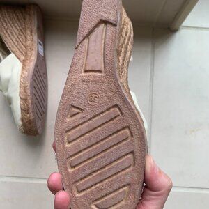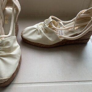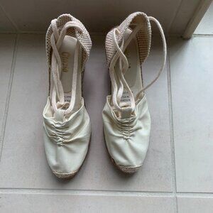 White Canvas Wedge Shoes With Ankle Ties Size 8
