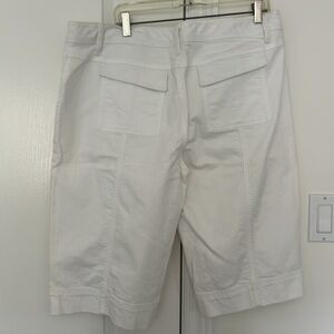 This is a pair of white denim capris. There are functional pockets in the front and back. In excellent condition.