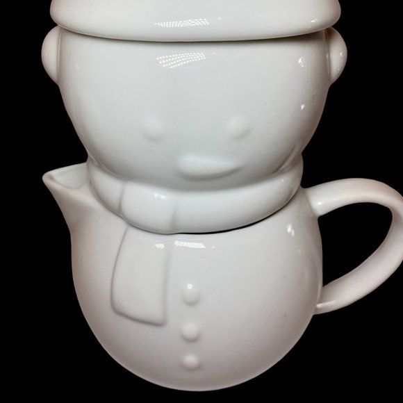 White Ceramic Snowman Stackable Creamer and Sugar Christmas Table Tea Coffee
