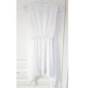 It has a white chiffon vest draped over look while the "vest" portion is actually attached to the dress.