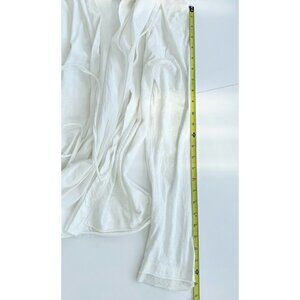 White Cotton Cardigan from Contemporaine. Designed to keep you cozy, the long-sleeved cardigan with a ribbon closure at the front. suitable for regular size L. This cardigan features a solid pattern that exudes a sense of calm and sophistication, making it an ideal choice for both casual and more polished looks. Its open design allows for easy layering, making it a staple piece for any season.