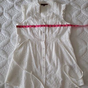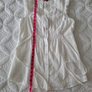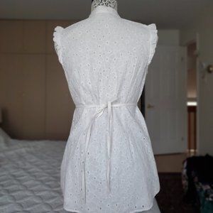 Summery white cotton tunic white a tie around the waste. One button missing (see picture).