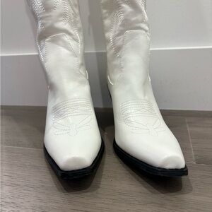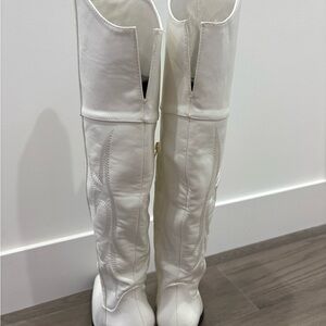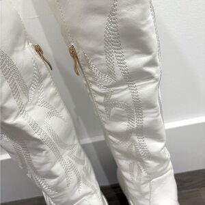 White Cowgirl Knee-high Embroidered Women's Cowboy Boots Size 7