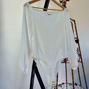 Let your style bloom in this stunning Guess bodysuit. With its delicate draped design, this cream-hued bodysuit is the perfect pick for a night out, exuding femininity.