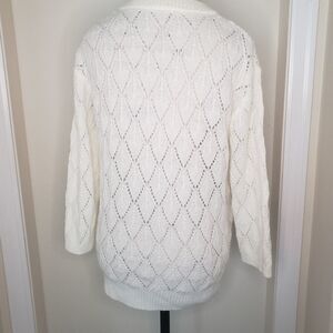 White Diamond Crochet Knit Crewneck Pullover Sweater Top with Ribbed Trim, by Danish brand, KAFFE.