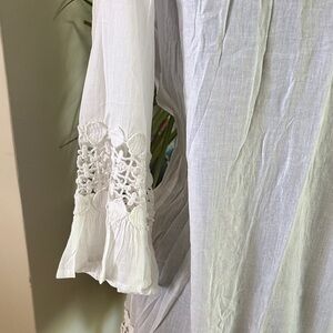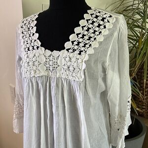 Brand New Never Worn white women's beach cover-up tunic top featuring intricate crochet trim.