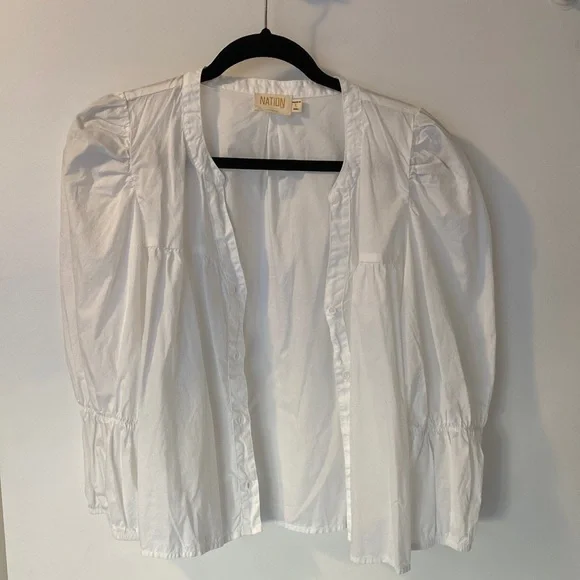 New without tags. White button up, cropped. Sleeves are a little bit puffy.