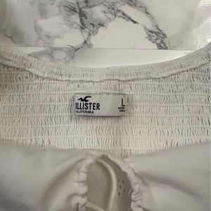 white crop top with puff sleeves and tie up bow Crochet detailing Size Large From Hollister