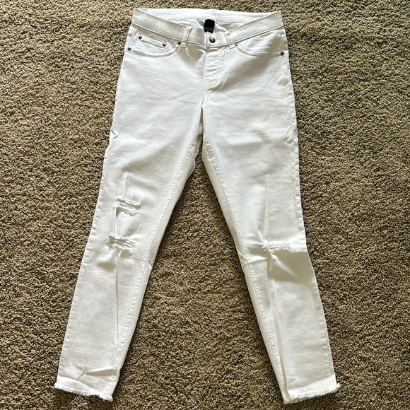 Hue White Jeans Stretchy Slip on/off Faux Front Pockets/Botton/Zipper Good Condition