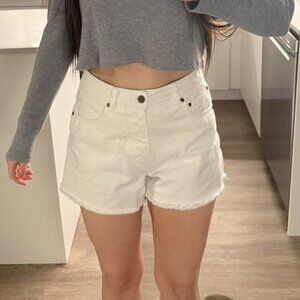 white denim shorts! worn ONE time. purchased in may. orig $80!!! want these gonsies