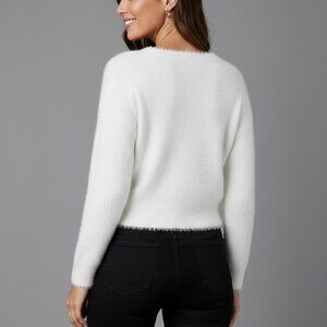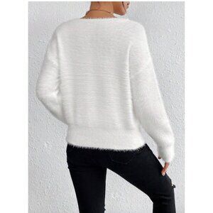 White Drop Shoulder Fuzzy Sweater