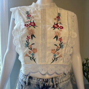 White Embroidered Floral Top - Various Sizes Available (M, L, XL)