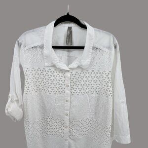 🤍 White Eyelet Blouse Coastal Grandma Minimalist 100% Cotton 3X