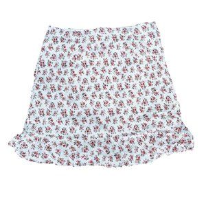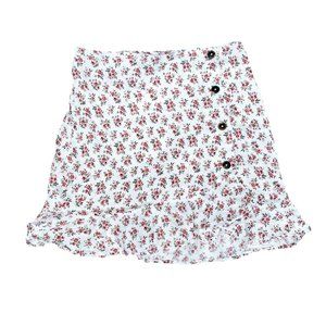 White Floral Ruffle Mini Skirt with Red Flowers High Waist Hollister Small