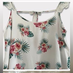 White 🌺Floral Tiered Mini Rayon Sundress🌞/ Beach Cover Up Size Juniors Large