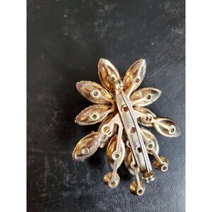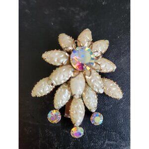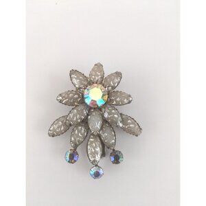 Vintage Floral Brooch with Iridescent Rhinestones. Great Piece in excellent condition from the 1950s. I can see this piece on a dress, jacket or hat. It reminds me sunshine yet it is clearly a flower with lots of shimmer and shine. Ideal for anyone who loves flowers. The actual flowers are an ivory tone with the iridescent accents.
