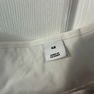 Brand new, never worn white flowy tank top in size 4X. Features a flattering V-neckline with thin adjustable-style straps and a relaxed, breezy fit. Lightweight fabric that drapes beautifully – perfect for layering or wearing on its own in warmer weather.