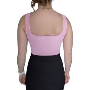 White Fox Boutique Pink Ribbed Square Neck Tank Top Women Size Small