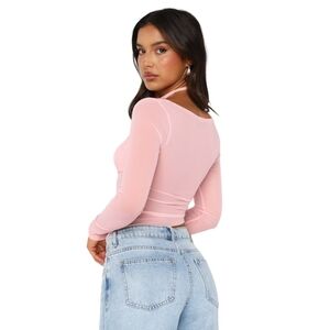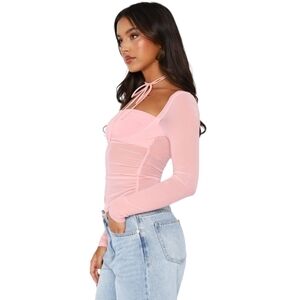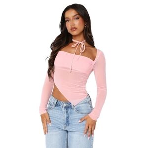 White Fox Boutique Pink Sheer Long Sleeve Top