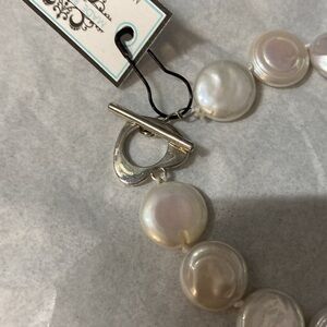 White Freshwater Pearl Bracelet - Ivory White Coloured - Silver Toggle Clasp