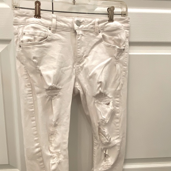 Super cute white jeans. Garage, low rise ripped jeans