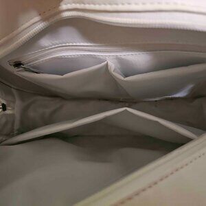 - see some zipper discoloring and small bends in the vegan leather in the pictures