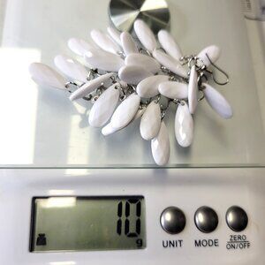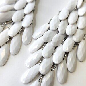 White Glass Bead Long Earrings Chandelier Teardrop Diamond Shape Drop Earrings