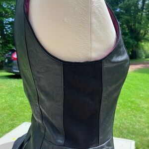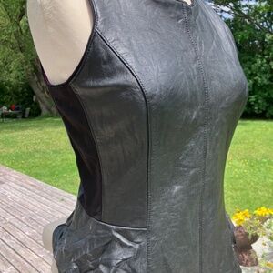 Sleek and sophisticated, this 100% leather sleeveless peplum top from White House Black Market is a standout piece. Featuring a flattering peplum silhouette and an elastic side panel for added comfort and flexibility, it combines edgy style with an elegant fit. The exposed back zipper adds a modern touch.