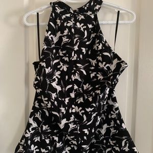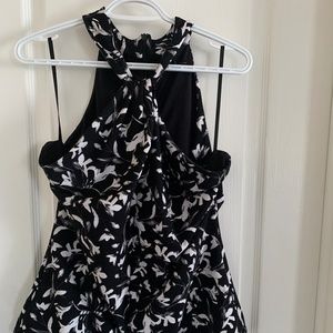 Elevate your wardrobe with this chic sleeveless halter top from White House Black Market. Designed in a black-and-white floral pattern, it features a stylish twist-front neckline with a keyhole detail for an elegant, modern look. The soft, stretchy fabric offers a flattering drape and comfortable fit.
