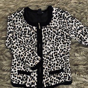 XS White House Black Market Leopard print cardigan, zip front closure. Rarely worn.