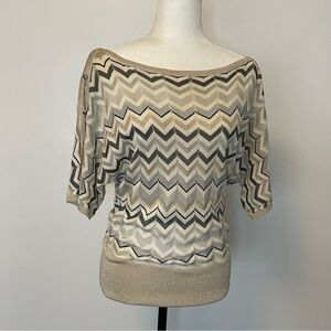 White House Black Market Chevron XS Blouse Top Metallic Chevron Pattern
