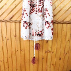 White House Black Market Cold Shoulder Dress Size 6 Taupe Red Short Sleeve D74
