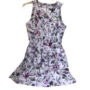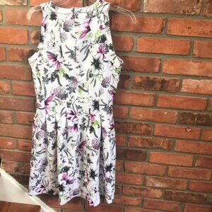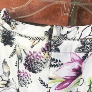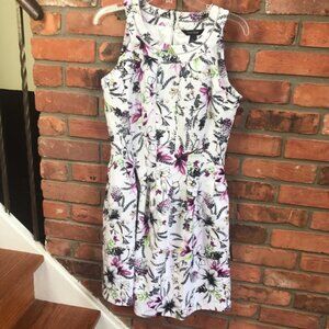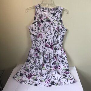 White House Black Market Fit Flare White Floral Dress A-Line Sleeveless midi Sheath, Size 8