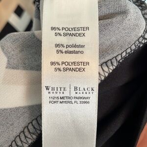 White House Black Market geometric print straight mini dress. There is no size tag on this one so please see measurements. It is very stretchy! I have classified it as a medium based on measurements.